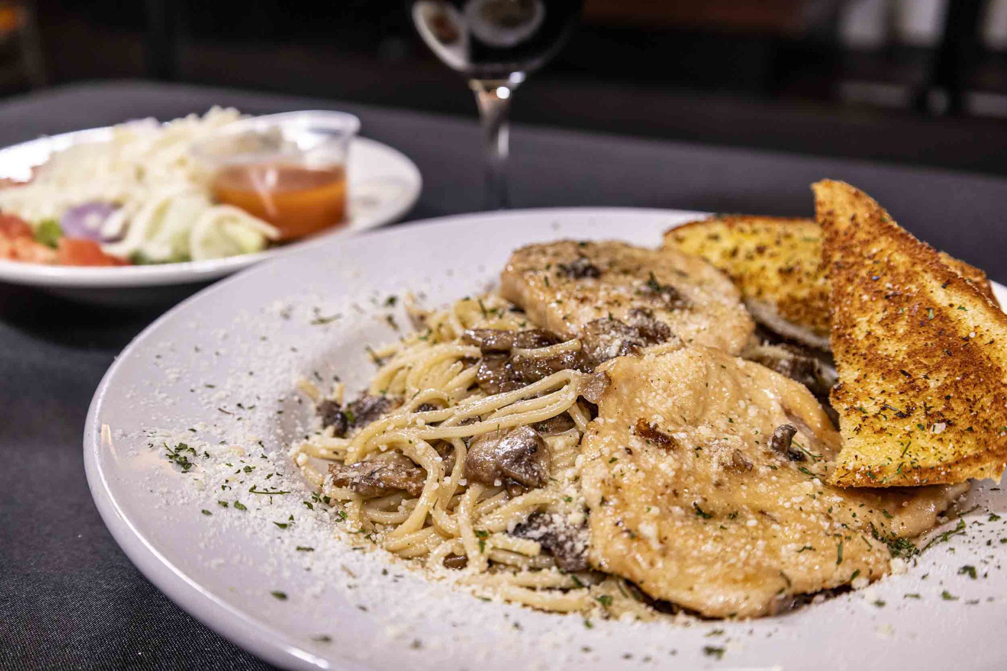 Sauteed chicken cutlets and mushrooms in a rich marsala wine sauce served over linguine.